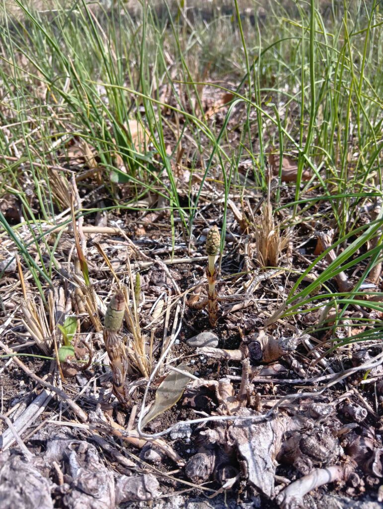 リラックス館のおはなし会に行く途中、枯れ草の中に「土筆(つくし)」を見つけました。小さくて可愛い土筆です。